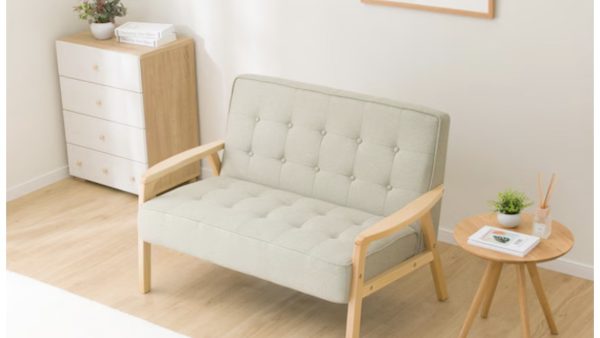 天然木フレームのコンパクトソファ(イエローグリーン)