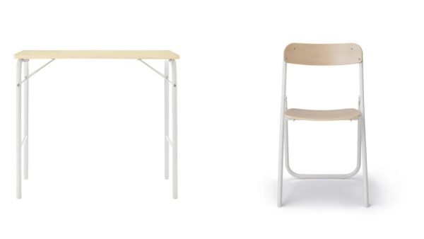 MUJI 折りたたみ式スチールパイプテーブル&チェア(ナチュラル×ホワイト)