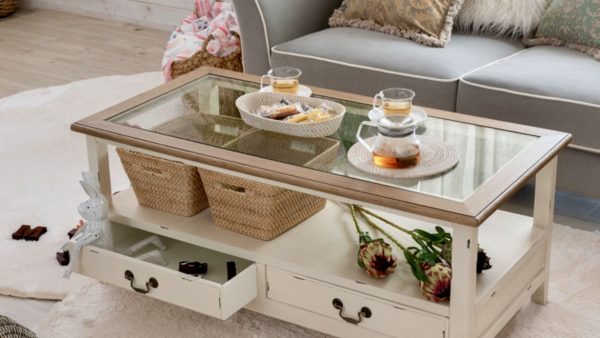 Blossom コーヒーテーブル 天板ガラス(オフホワイト)