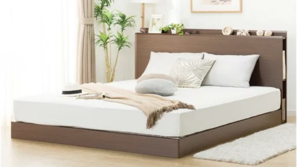 クイーンベッド マットレス付き(ミドルブラウン) ※コンセント・宮付き